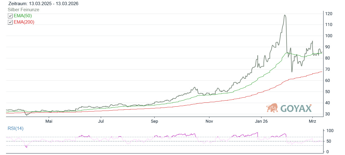 Silberpreis 11.03.2026: Deutliche Korrektur nach vorheriger Rally