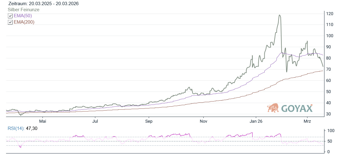 Damit zeigt sich deutlich, dass Silber aktuell deutlich sensibler als Gold reagiert.