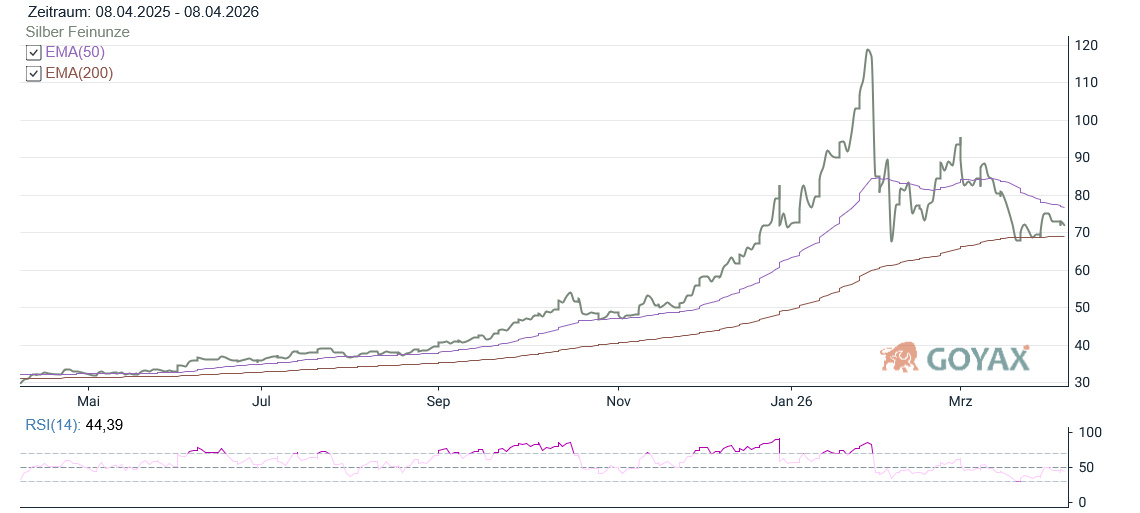 Technische Lage Gold und Silber (Stand 07.04.2026 – 7:32 Uhr)