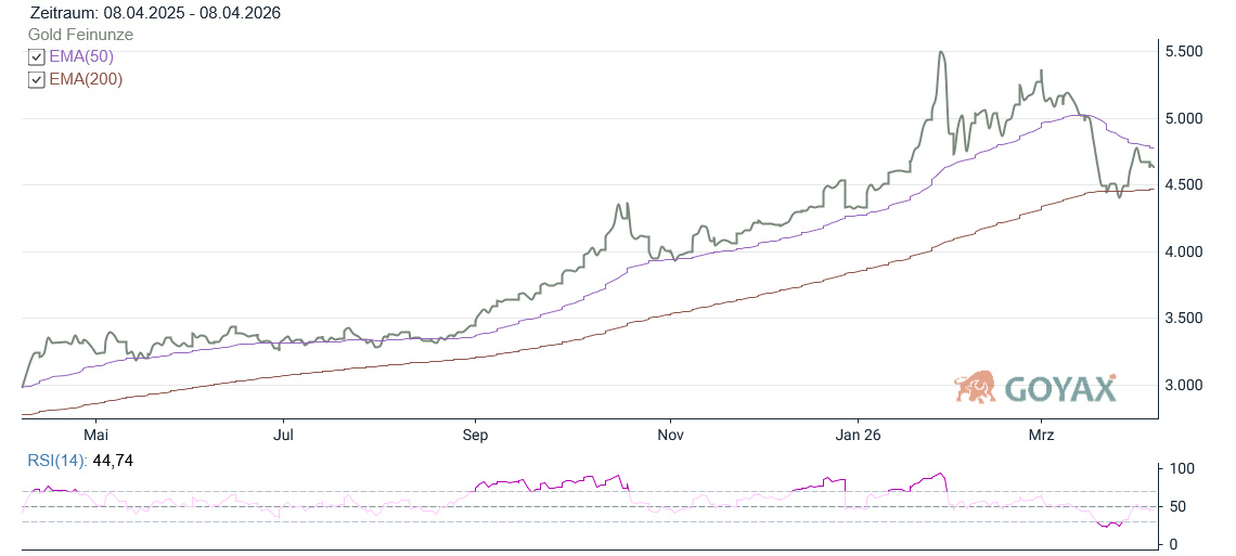 Goldpreis am 06.04.2026 stabil aber geringe Liquidität am Ostermontag