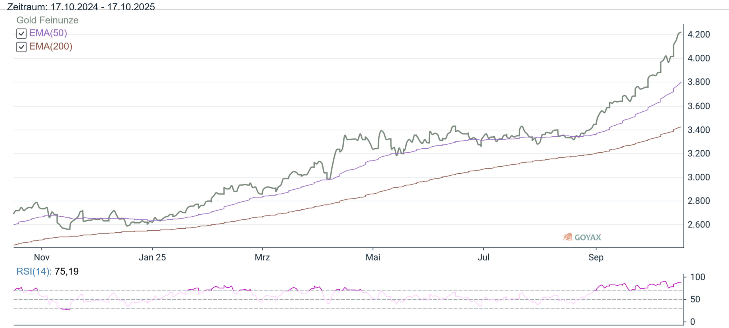 Goldpreisentwicklung 15.10.2025 – Rekordlauf setzt sich fort